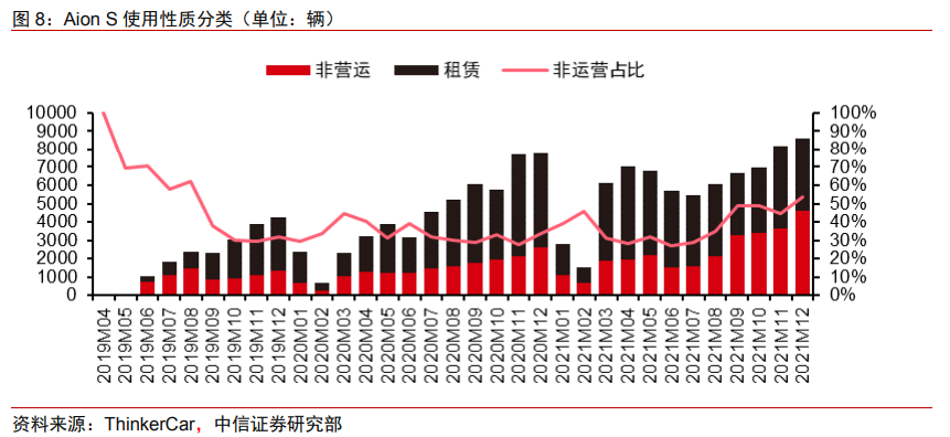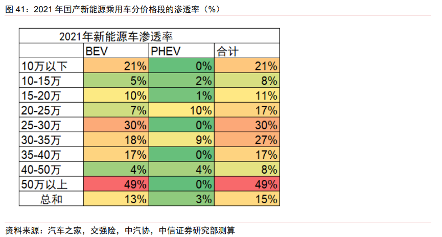 因为在广汽切入新能源的时间点,市场上已经有了比亚迪、宝马、北汽、荣威、吉利等新能源车型。作为后来者的“广汽李云龙”竟然能带领埃安杀出一条血路,秘诀其实在于产品定位以及销售策略。2019年,埃安系列的第一款纯电轿车AION S发布,定价13.96万元起。在那个平均续航仅有364KM,售价普遍在15万元以上的纯电轿车市场中,AION S的最高续航510KM,“性价比”尽显。从S开始,到之后的AION Y和AION V,埃安的定价始终处于10-20万元左右的中端区间。尽管途中也推出了超过20万元的LX,但始终不是埃安的销售主力。作为广汽旗下唯一一个新能源品牌,低于10万元的定价不利于埃安之后的产品线布局,而一旦高于20万元,又需要面对特斯拉、蔚小理等新势力的对手。据中信证券测算,当前新能源车渗透率最高的价格区间为50万以上和25-30万,而10-15万渗透率最低。因此,10-20万元对于埃安来说相对安全,也足够发挥。古惠南的战略是,先通过B端铺开销量,打响知名度后再通过新车型的推出占领C端市场。借助广汽与广州公交集团等投资者共同开发的出行平台如祺,埃安通过最早推出的AION S迅速扩大了B端市场的销量。为了适应网约车的要求,AION S的“炫”版本还增加了包含智能刷卡支付、人脸识别、行车记录仪甚至计价器的选装包。在B端的带动下,AION S在2019年的销量迅速突破了3万台,2020年销量达到了4.56万,占比超过77%,撑起了埃安当年的大部分销量。来源:乘联会,锂猫实验室制图