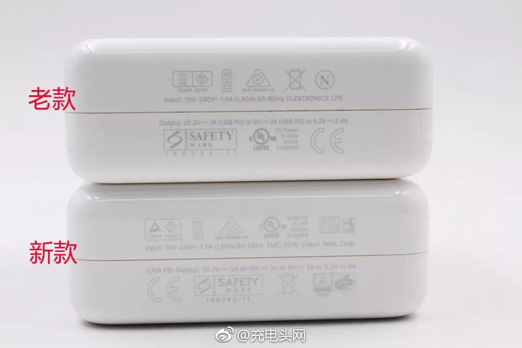 可以发现,新旧两款的外观并没有太大的差别,两款都是采用了可分离插头设计。新款型号为A1947,旧款型号为A1718。