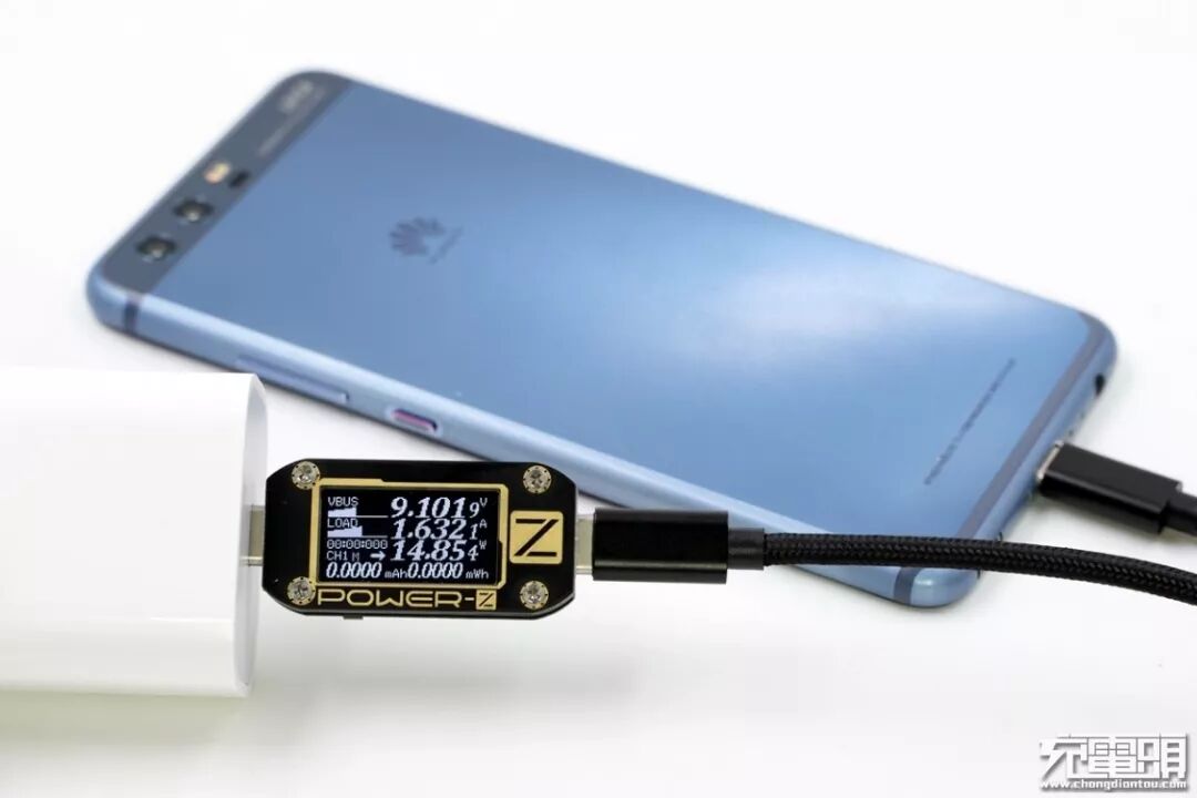 充华为P10(电量48%)时,电压9.1V,电流1.63A,功率14.85W,快充开启。