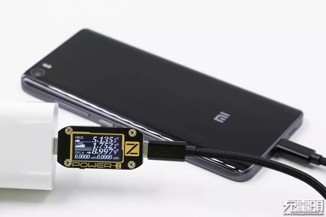 充小米5(电量12%),电压5.13V,电流1.75A,功率8.99W,小米5只支持QC快充,不支持PD快充,普通充电模式。
