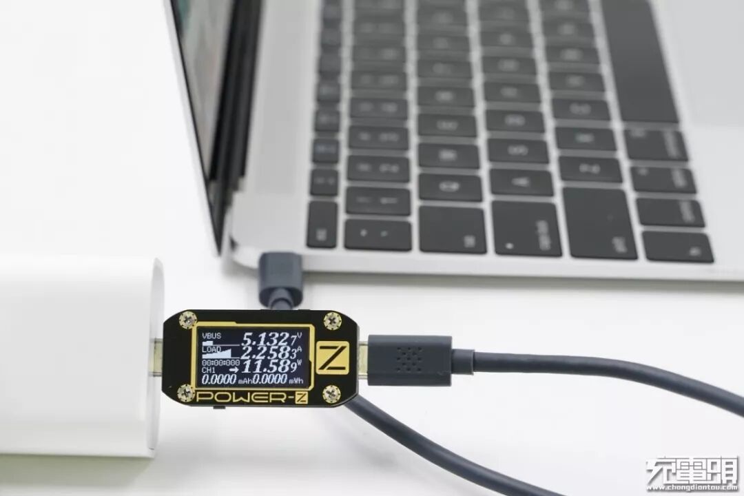 充MacBook(电量61%),虽然握手PD充电,但PDO选择5V电压档位,并没有选择9V,电压5.13V,电流2.25A,功率11.58W。(在笔记本当前电量,小编换成苹果30W充电器对其充电,功率有28W)