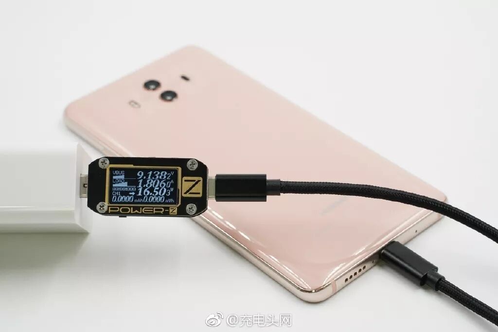 给华为Mate 10充电,电压9.13V,电流1.8A,功率16.5W,快充开启。