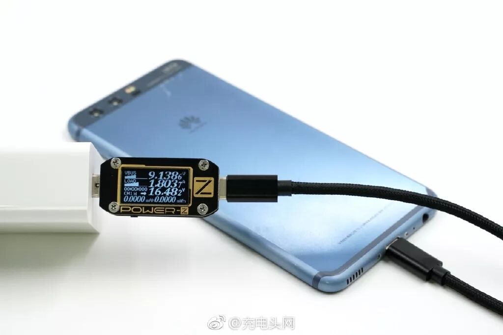 给华为P10充电,电压9.13V,电流1.8A,功率16.48W,快充开启。