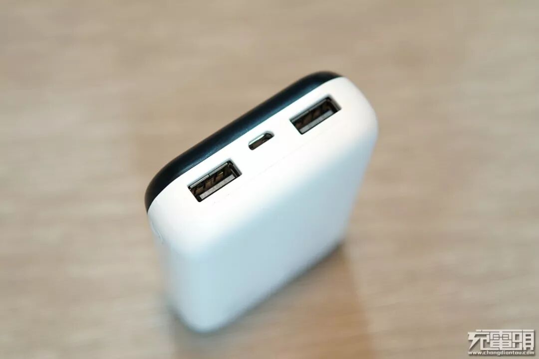 2个USB输出口和1个MicroUSB输入接口并排放在了顶部。