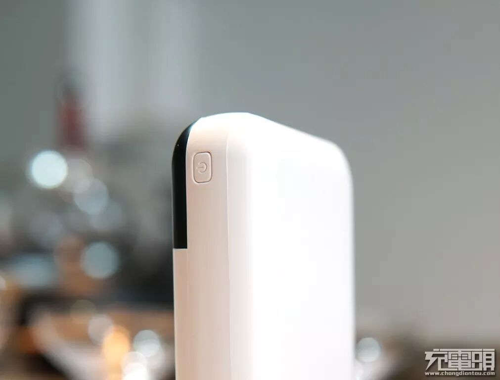 移动电源正面比一张公交卡略大,完全可以单手握持。