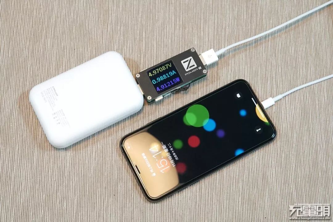 USB out1充iPhone XS,4.97V/0.98A,功率4.9W,和苹果原装充电器相当。