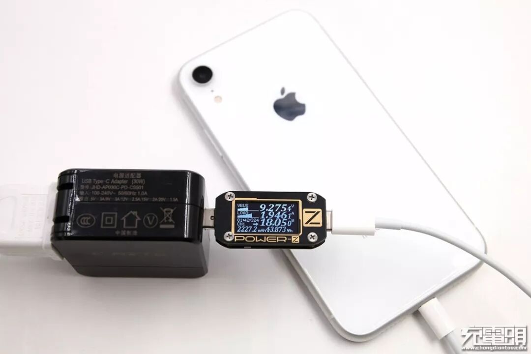 充iPhone XR,电压9.27V,电流1.94A,功率18.05W,开启PD快充。