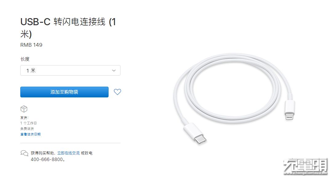 但是数据线就没那么多选择了。目前来说,能激活USB PD快充的只有“原装苹果USB-C to Lightning”这一条线可供选择。官网售价最便宜的也要149元。