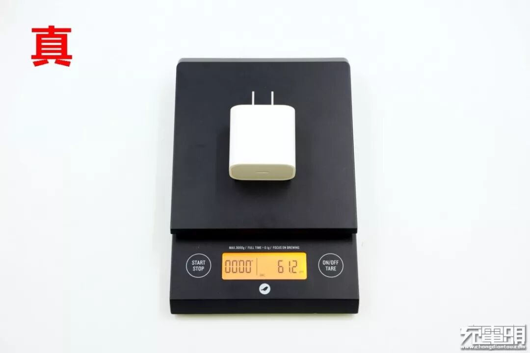 在来看看三款充电器的重量,真品充电器为61.2g。