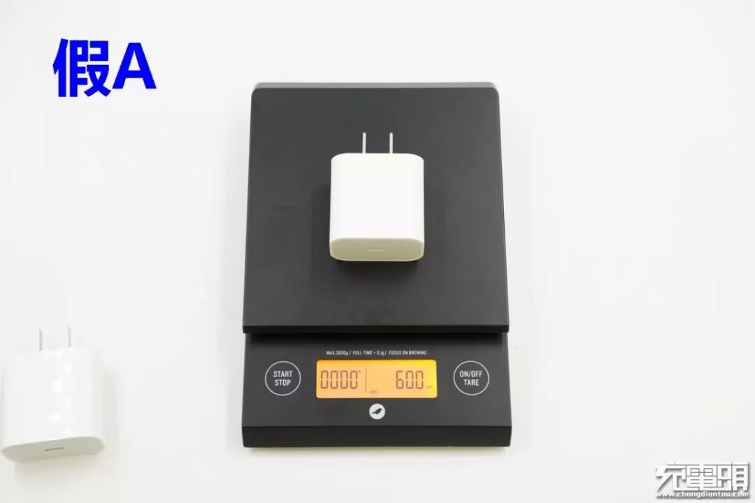 本文从外观上着手,让消费者可以在外观上直接判断真假,通过观察USB-C口舌片、AC插脚、背后白灰塑料面相连处,有条件也可以用称重来测量,小白也可以很直观地判断真伪。