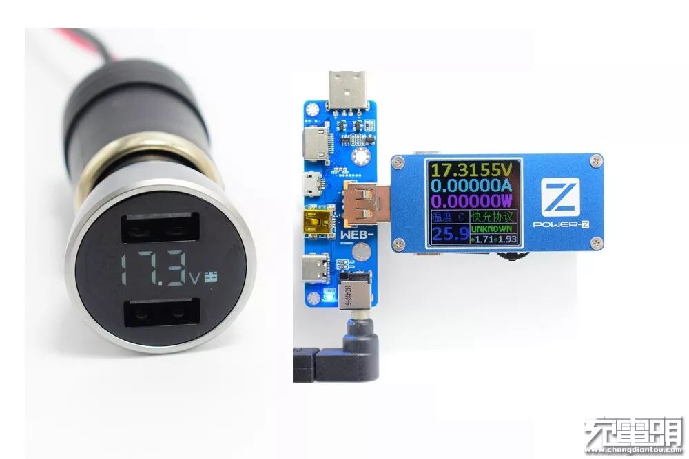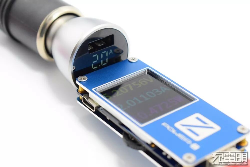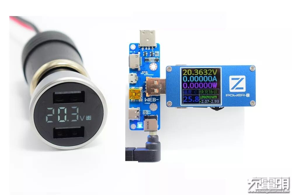 在20V档,公牛车充显示20.3V,POWER-Z USB测试仪显示20.3632V。通过三档电压对比,公牛数显车充的电压示值准确度不错。