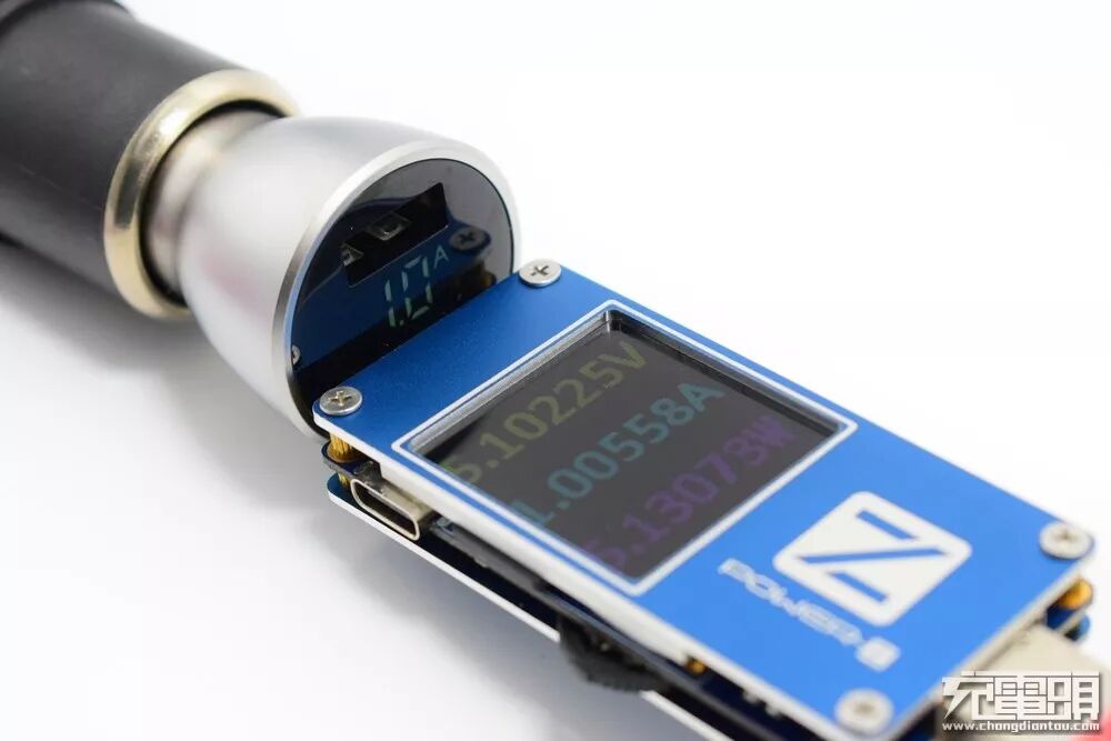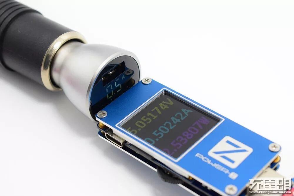 当USB输出端接入用电设备,显示屏显示实时电流。