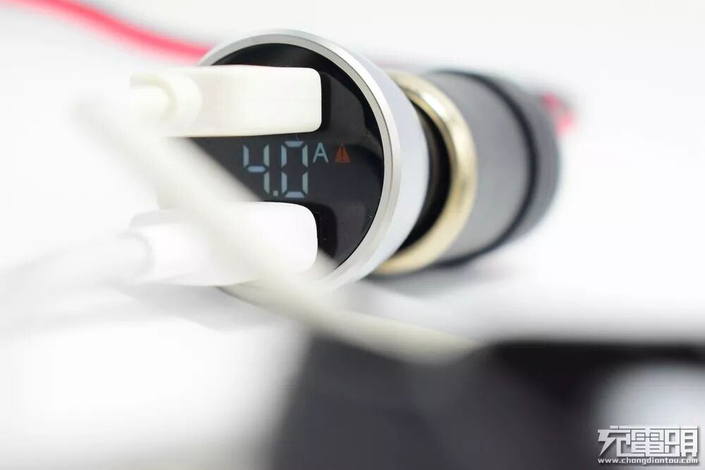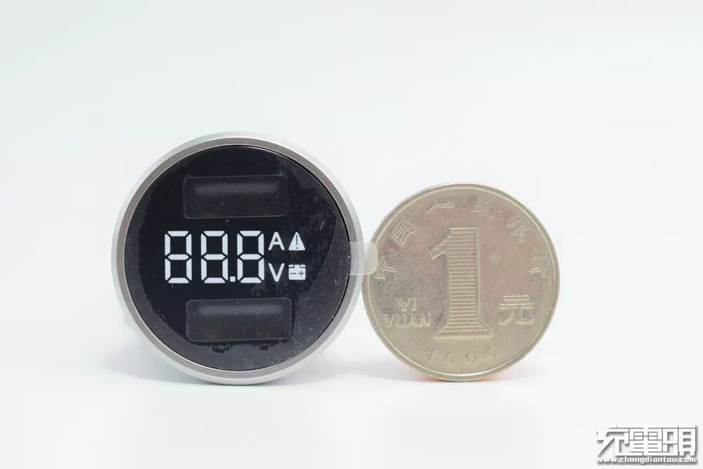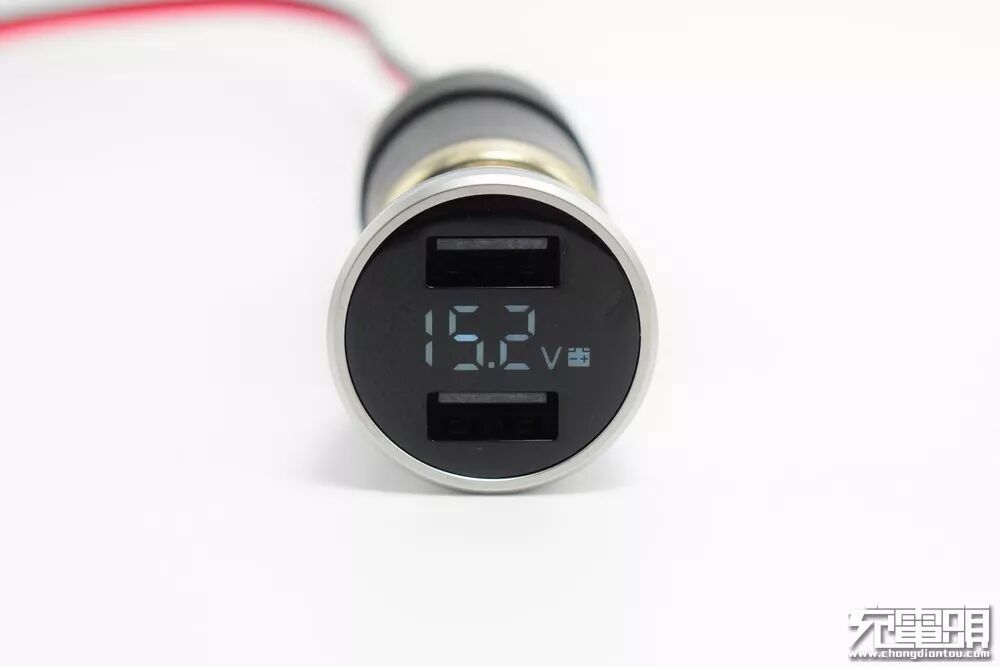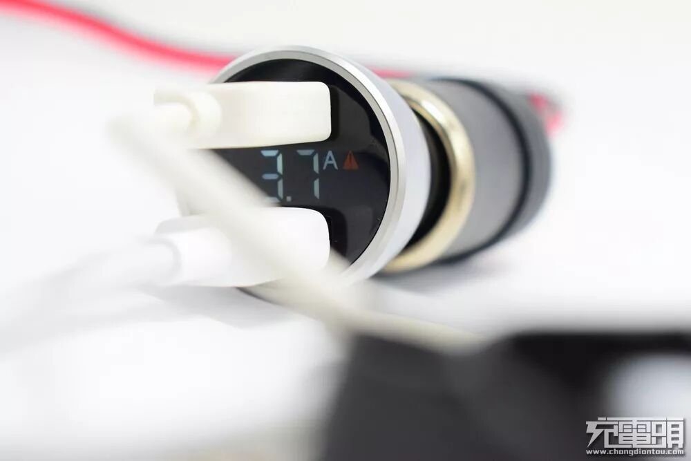 由于增加了数显LED显示屏,输出端面比同类双口输出的车充要更大一些。