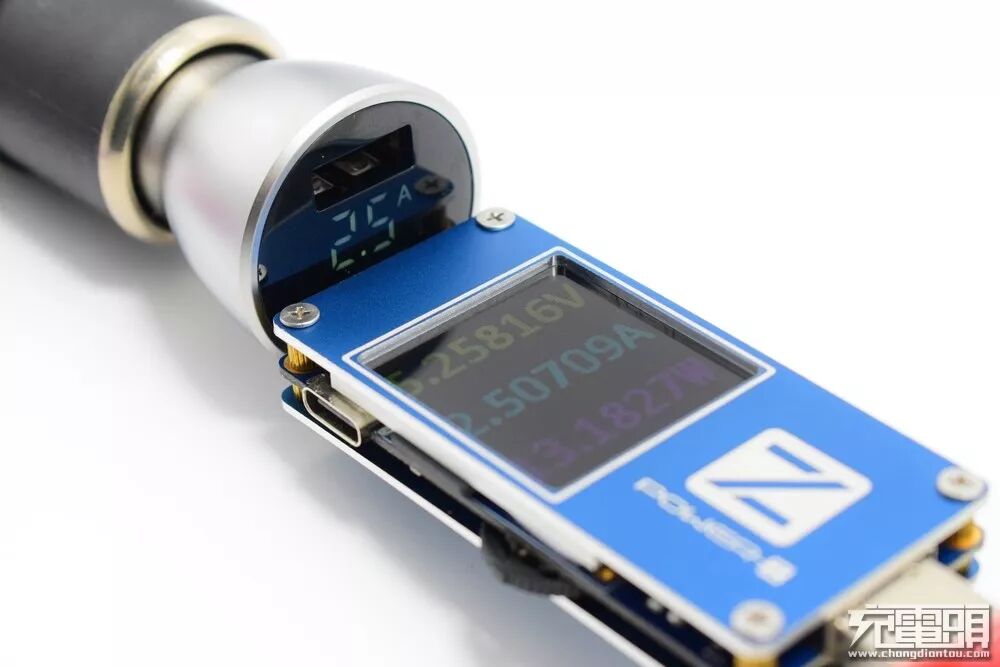 在2.5A档,公牛车充显示2.5A,POWER-Z USB测试仪显示2.50709A。通过对比实测,公牛数显车充电流显示同样有着不错的准确度。