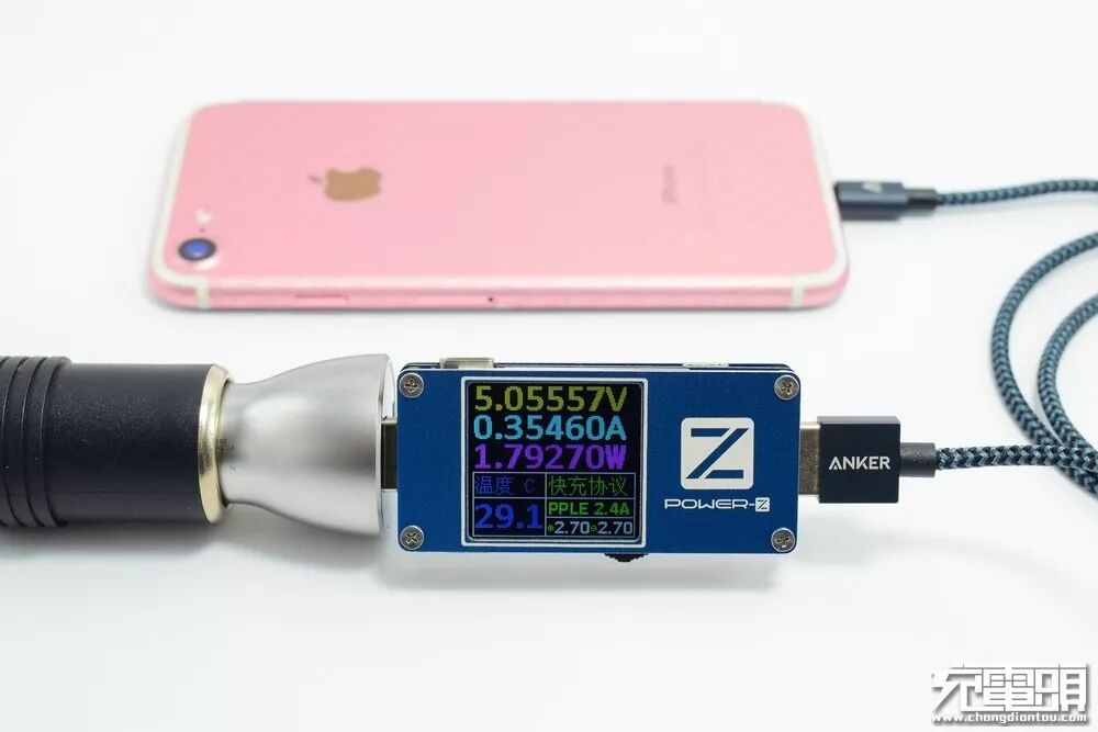 给iPhone7充电(接近满电),同样顺利进入Apple 2.4A模式。