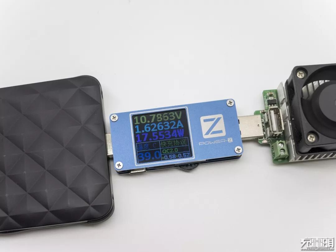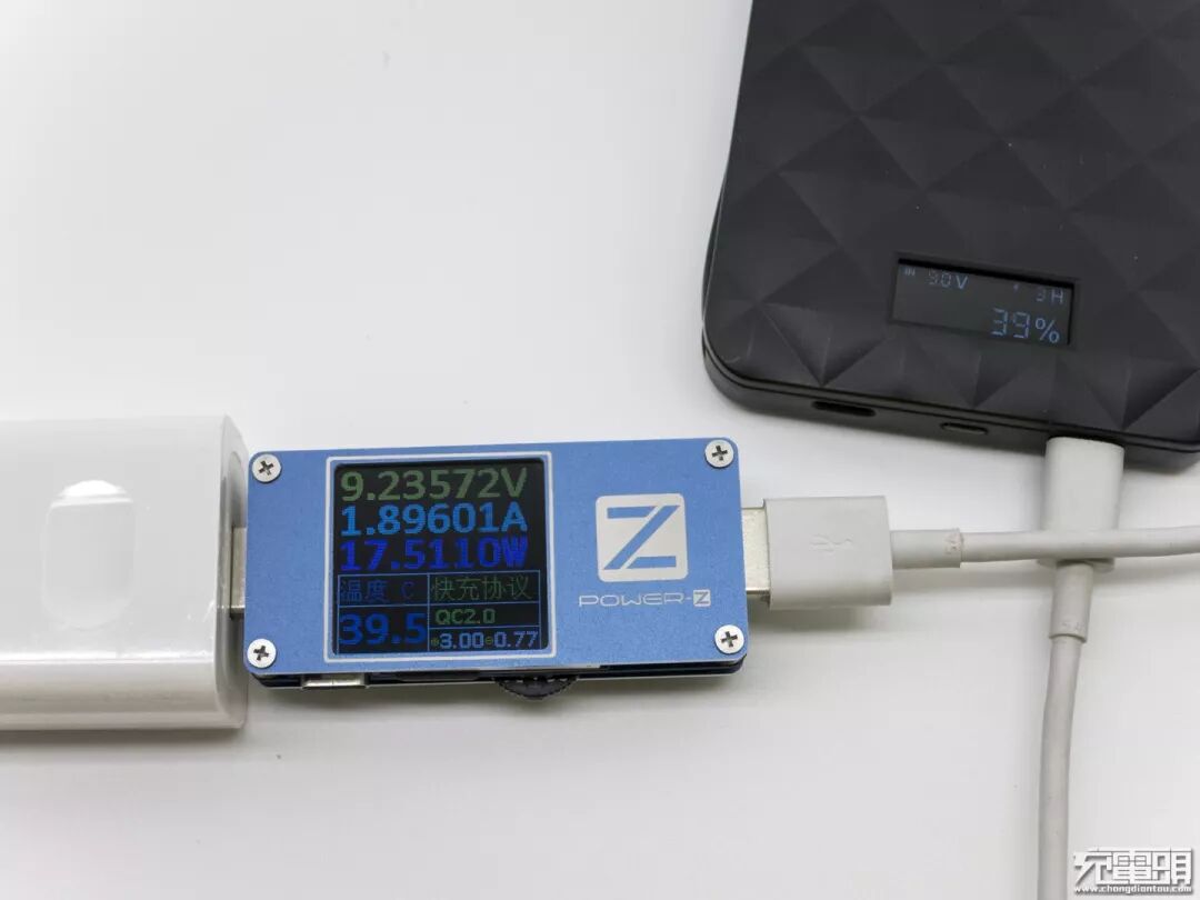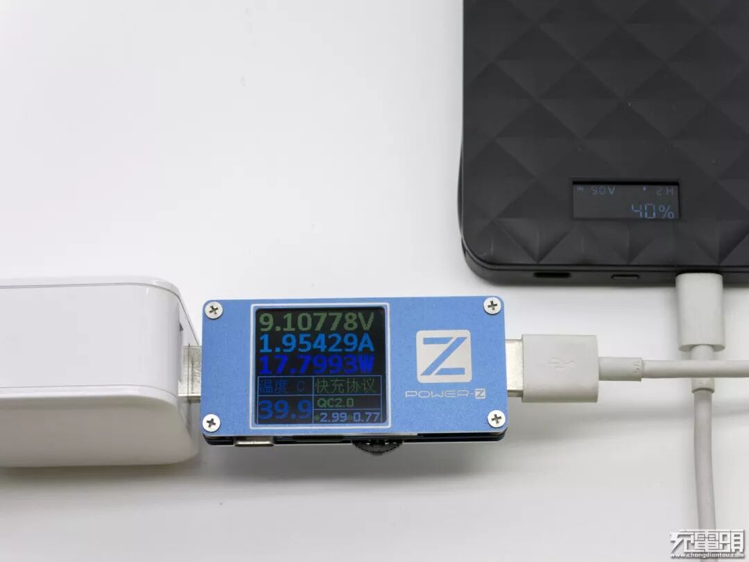 驰为QC充电器充电测试,电压9.16V电流1.93A功率17.71W,握手QC2.0协议目测2小时充满。