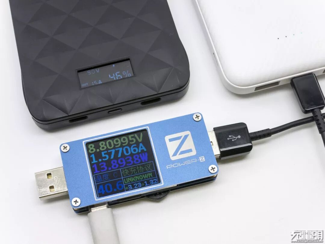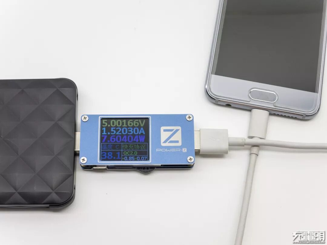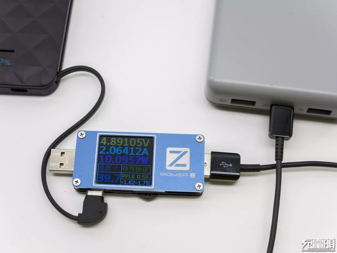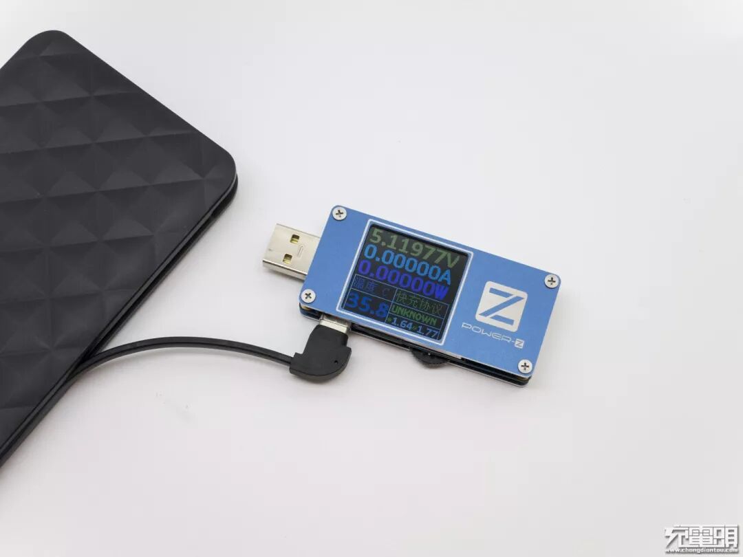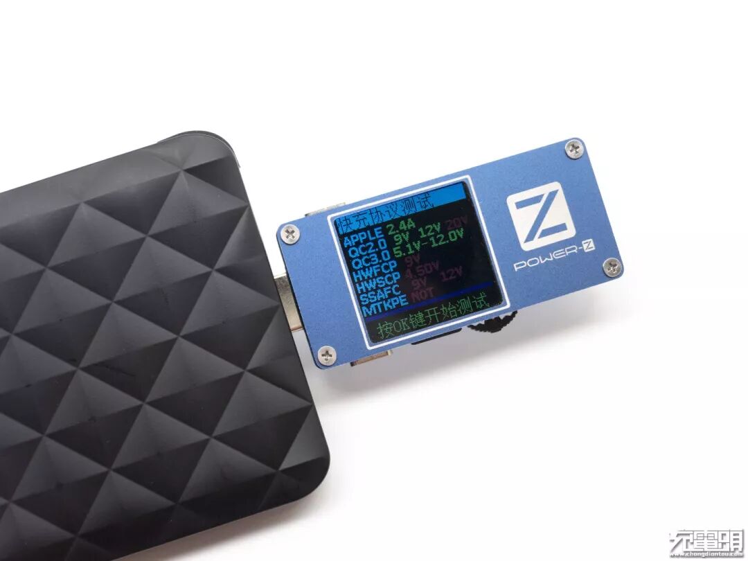 用POWER-Z KM001测试仪侦测多协议,显示支持BC1.2 DCP 三星2.0A。