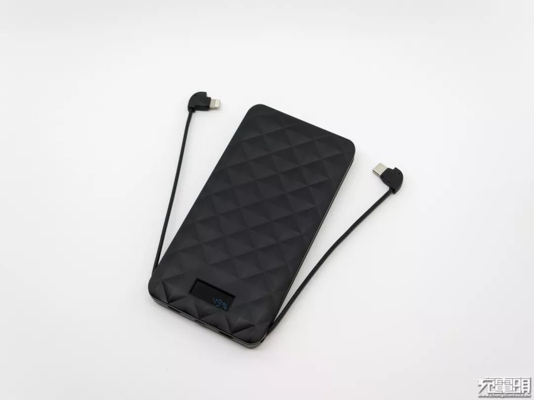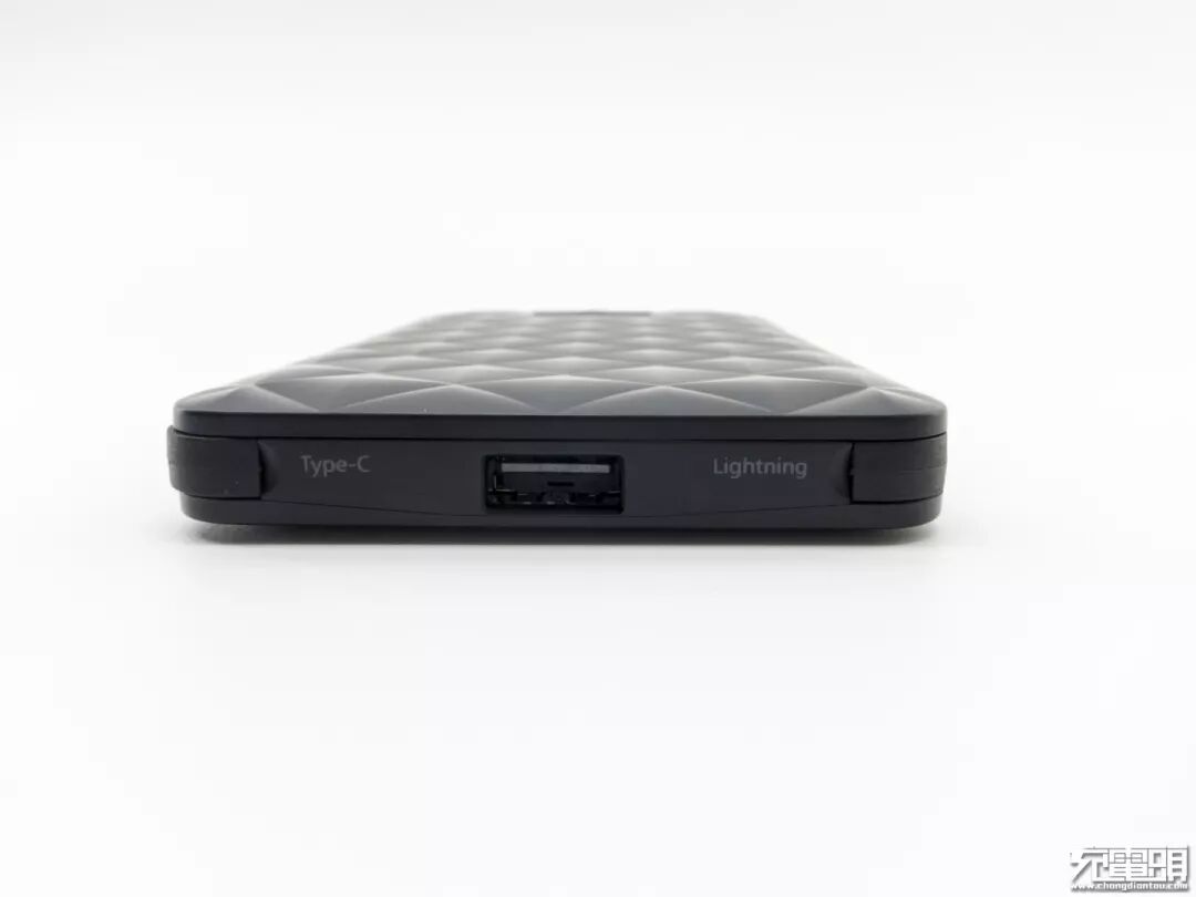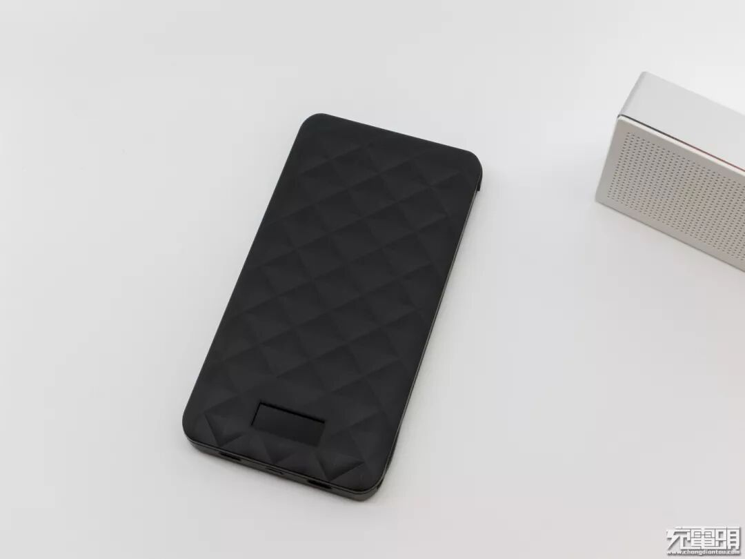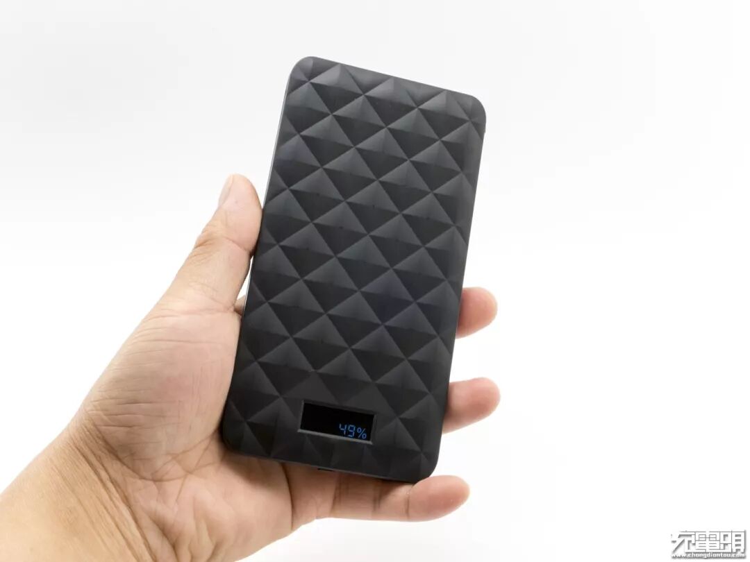 黑色的iWALK移动电源,外壳采用PC+ABS材质,表面菱形凹凸有致,最下面有一个性能超级强大的显示屏,终结者2移动电源和常见的移动电源类似,但菱形设计给产品带来约2MM厚度,否则产品可以更薄。