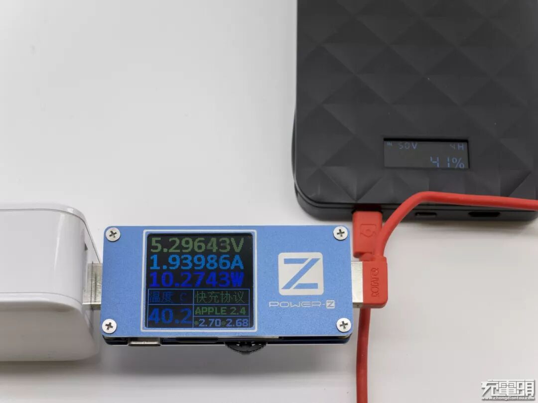 iWALK终结者2移动电源Lightning口支持5V2.1A输入,接L口测试电压5.29V电流1.93A功率10.27W,输入功率还不错。