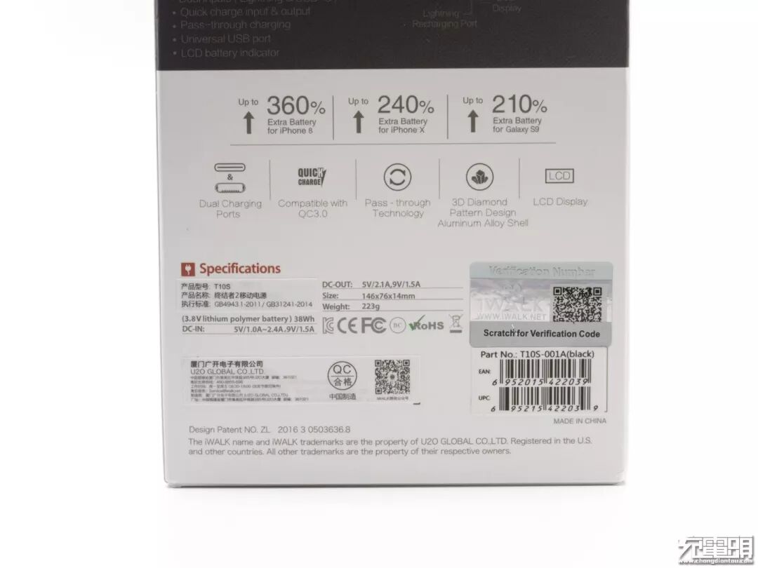 侧面用英文标注了最好的超级移动电源,iWALK在包装盒的设计上也是相当精致。