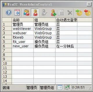 权限设置功能不仅需要在用户编辑中进行设定,还需要开发人员在画面编辑窗口中对可操作的窗口控件进行权限赋值。只有管理员赋予操作员的权限和窗口控件的权限赋值匹配,登录系统的操作员才可以进行相应的操作,否则WCS 会弹出没有权限的提示窗口。WinCC 自带20 种权限,开发人员可以增加额外的自定义权限,供操作员使用。