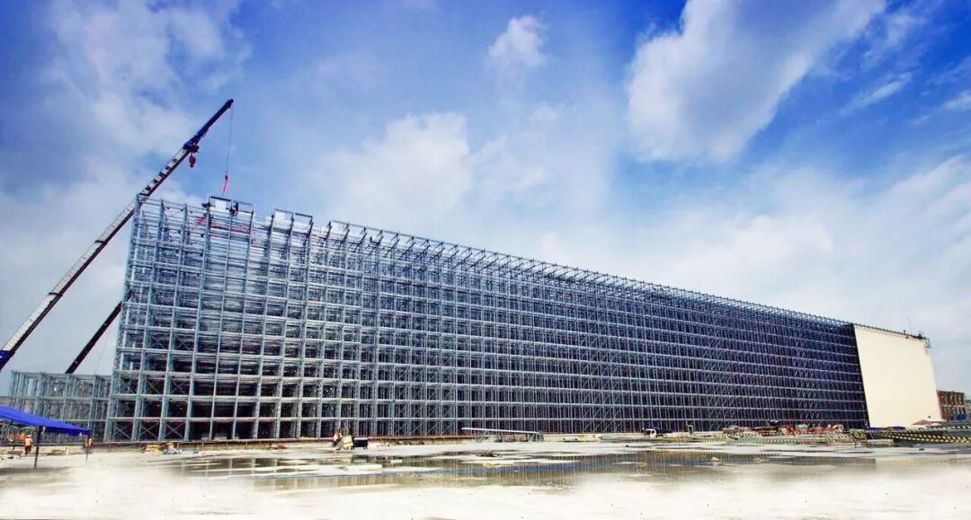 库架合一有较大的优势的,传统的仓库+货架,是分开施工的,先做好仓库,这需要至少数个月的工期,然后货架进入库内施工,由于受到仓库空间的限制,很多大型设备是无法使用的,施工进度必然受到一定影响,货架施工基本又需要数月时间;而库架合一露天施工,不受施工设备限制,可以使用超高吊机模块化吊装作业,而且外围结构与货架是同步进行的,货架装完了,整个库房也就接近完工了,这使得库架合一具有很大的工期优势。