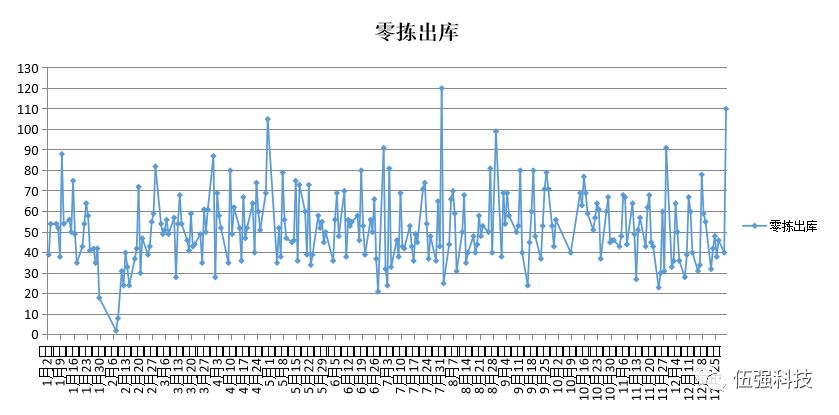 1)EN分析:即每张订单的订货品项数量分析。即通常所说的订单结构或订单行数分析。EN分析可以对订单行的分布情况做出准确判断,从而对拣选策略尤其是拆零方式提供指南。比如说B2C电商业务,其订单行很少,而对于医药的B2B配送,每张订单的行数会较多,两者在设计上的处理方法是不一样的。
