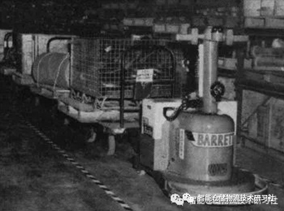 这种机器人由美国Barrett电子公司于20世纪50年代初开发成功的,它是一种牵引式机器人,后边带有车兜,在一间杂货仓库中沿着布置在空中的导线运输货物,可十分方便地与其他物流系统自动连接,显著地提高劳动生产率,极大地提高了装卸搬运的自动化程度。