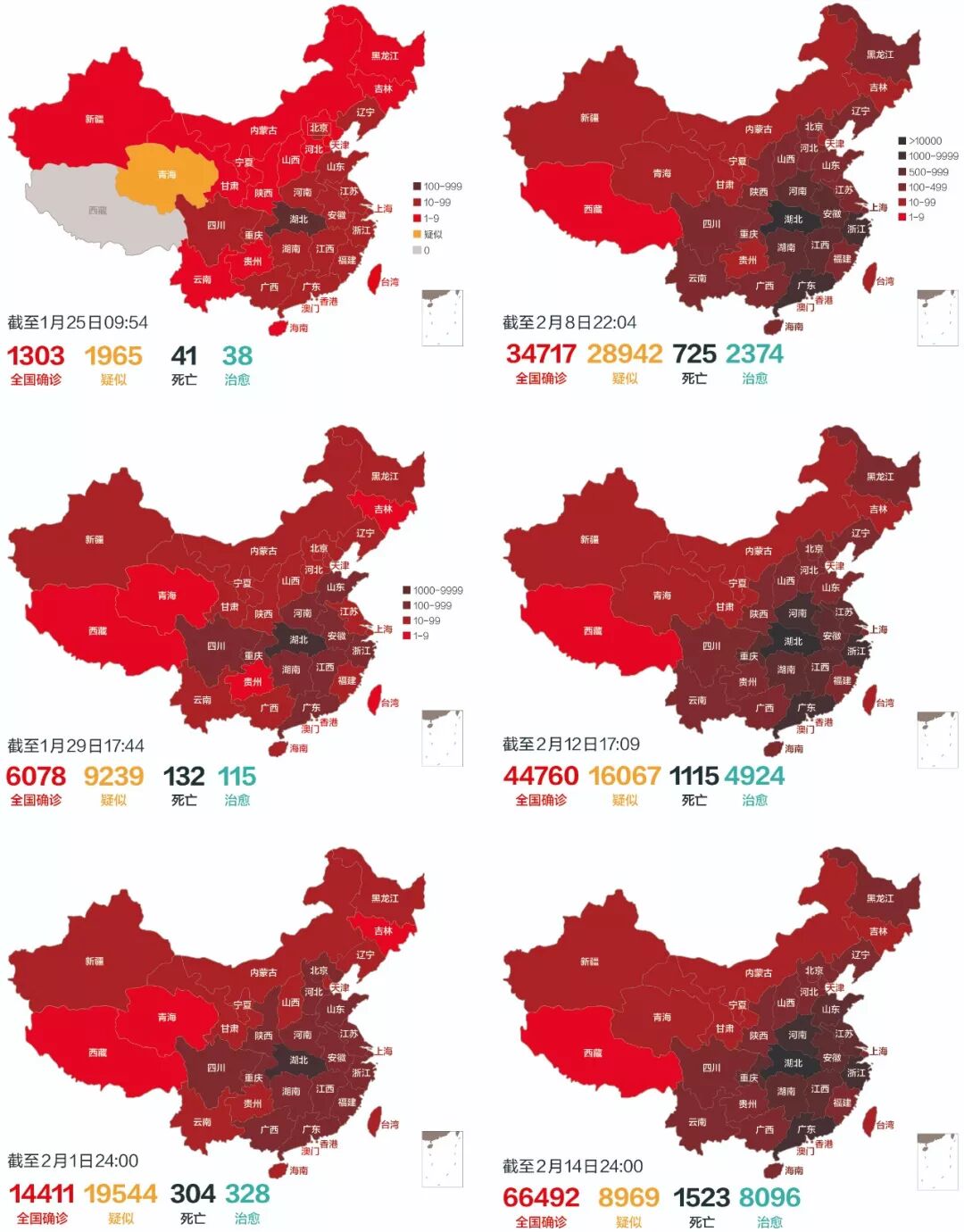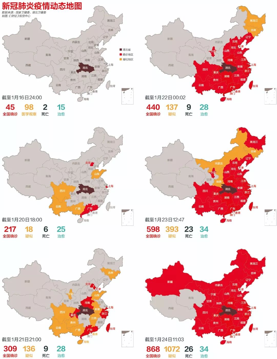 截至1月23日宣布“封城”当天,武汉累计确诊新冠肺炎571例,情况看起来并没有那么糟糕;但仅仅三周之后的2月14日,武汉累计确诊37914例!