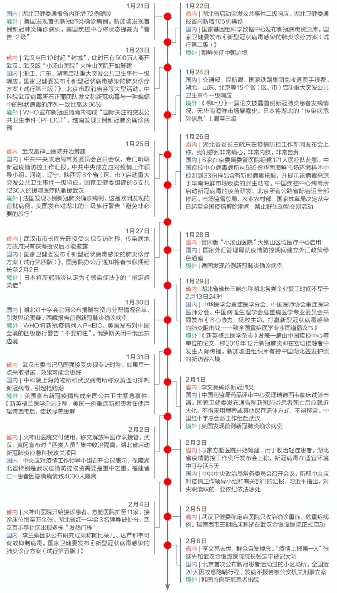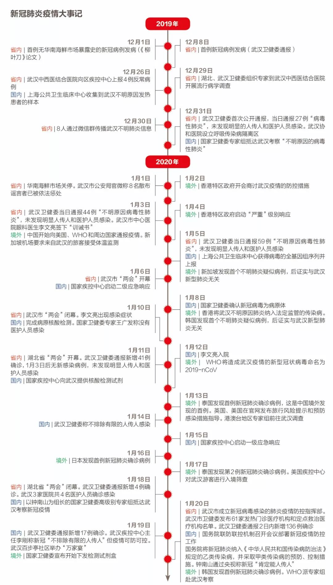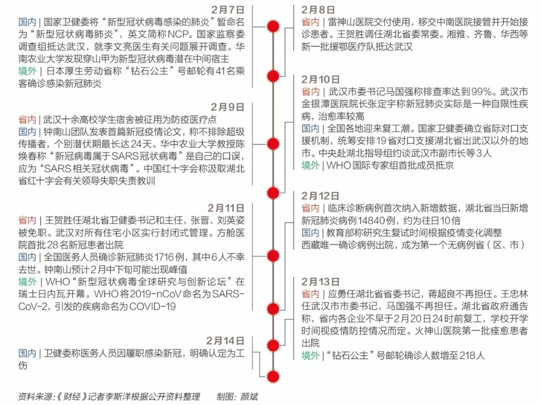 所有医院成了武汉最拥挤的地方。中国工程院院士李兰娟2月3日表示,对抗新冠肺炎疫情,需要早发现、早诊断、早隔离、早治疗,但这些目前在武汉都还做不到。由于对病毒传染途径认识不全面,加之防护物资缺乏,大量医护人员被感染。他们不仅要救治病患,还得保护自己,武汉的医院已无秩序可言。根据国家卫健委数据,截至2月11日,全国1716名医务人员感染新冠肺炎,6人不幸以身殉职。“非典的时候,也没有这么多的医护人员被感染。”武汉大学中南医院重症医学科主任彭志勇对《财经》记者说。1月6日到17日,武汉市和湖北省“两会”分别召开。期间,除了1月11日武汉卫健委通报了41例确诊外,两个“两会”期间武汉市卫健委始终通报无新增新冠肺炎病例,并表示“尚未发现明确的人传人证据”。此时已有医护人员陆续感染。武汉市中心医院眼科医生李文亮的一位同事告诉《财经》记者,李文亮最早于2019年12月30日在微信群里提醒大家注意防护后,他们抓紧自费买了一盒N95口罩,但“第二天就买不到了”,医院防护物资准备有限,赶不上诊治发热病人的日常消耗。1月12日左右,李文亮作为中心医院第一批感染的医护人员住进了病房。身为眼科医生,李文亮是在1月初接诊时被感染的。他在重上岗位之前,还曾因擅自警示疫情而受到武汉警方“训诫”。武汉市金银潭医院副院长黄朝林对《财经》记者说,早期传染病专科的医护人员,可能防护做得比较好,感染人数少,但在非传染病科室,一些非发热病人可能也患有新冠肺炎,“由于早期医护人员对病毒认识不够,可能会导致部分感染”。1月10日前后,中南医院收治了一位腹部不适的患者。彭志勇说,最早引发医护感染的正是这名腹病患者,他感染了相关的十余名医护人员,其中一名医生又将病毒传染给了家人。一位120随车护士称,她曾在手术麻醉科给脑出血的病人做手术,病人术后才承认已经发烧一周,手术时,6名医护人员都没有做防护。1月20日晚间,国家卫健委高级别专家组组长钟南山院士表示,“肯定有人传人”,这重新定义了疫情的严峻程度。为应对发热病人“因无序就医带来交叉感染和疾病传播问题”,1月22日武汉市确定了“7+7”模式,即在城区7家大型医院附近,选择7家二级公立医院作为发热门诊定点医院,专门收治发热病人。![]()