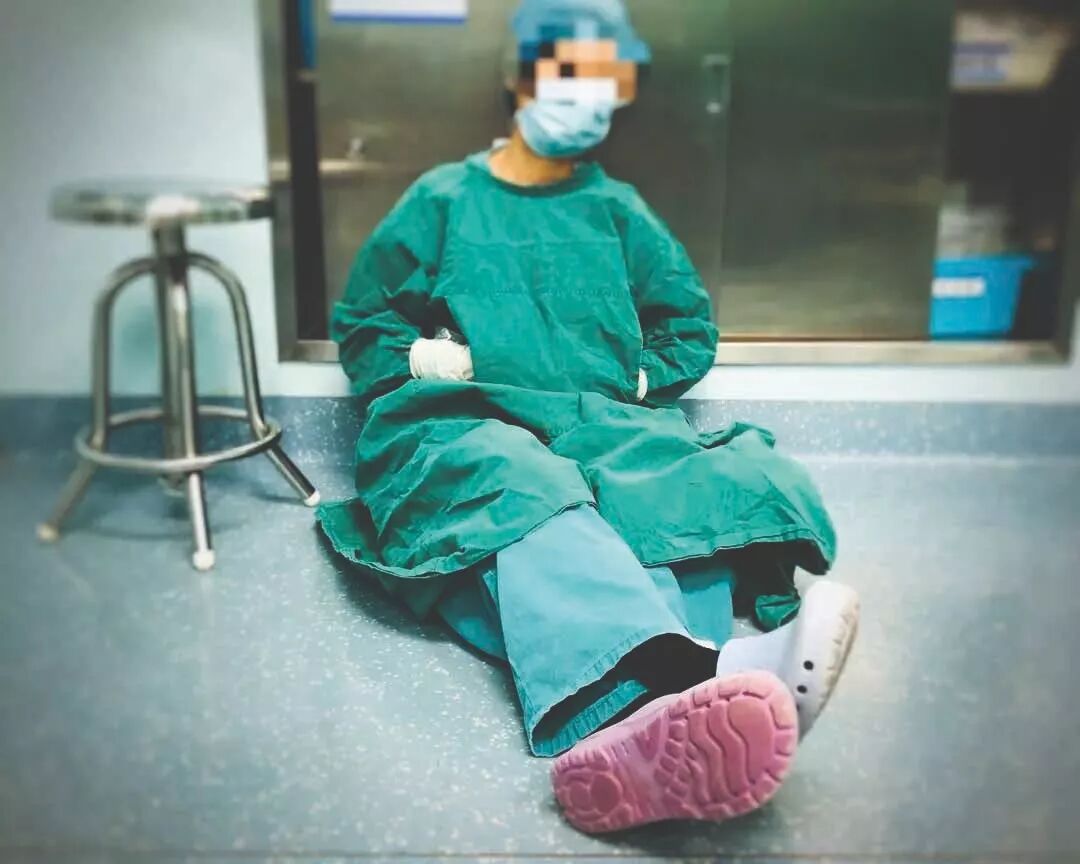 (2020年1月27日,武汉一家医院的手术麻醉科护士刚下手术就累得睡着了。)
