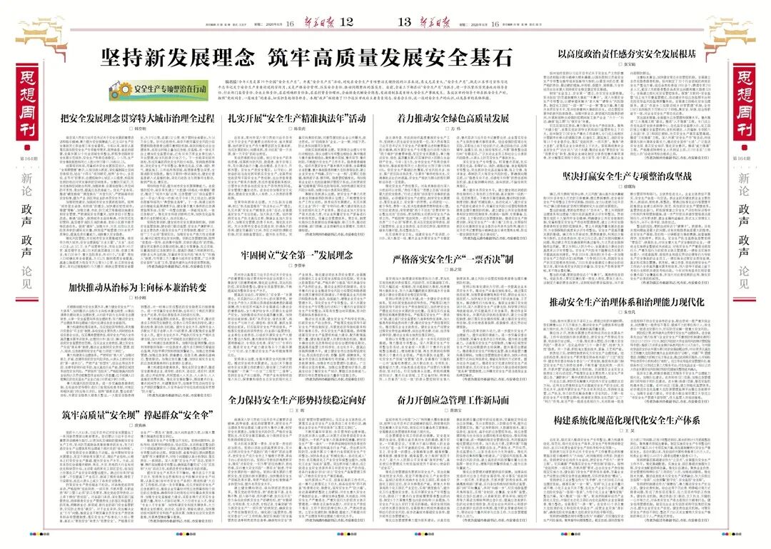 6月16日出版的《新华日报》思想周刊“政声”版,特别邀请了江苏省13个设区市政府主要负责同志、安委会主任,请他们谈一谈对安全生产的认识,以及各市的具体举措。“北京西路瞭望”(微信号:xhrbbjxllw)带您来看。