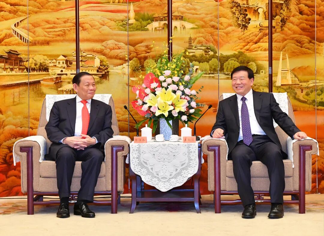 6月18日,江苏省委书记娄勤俭在南京会见了新加坡金鹰集团主席陈江和一行,并共同见证有关合作项目签约。