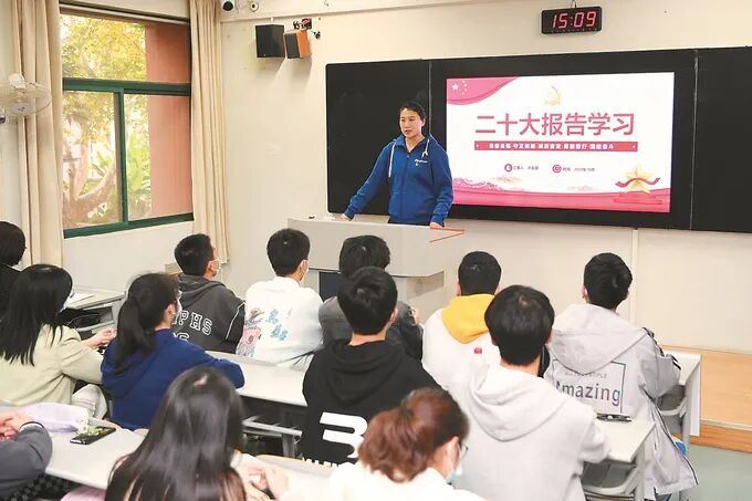 如何创新方式方法,做到二十大精神学习培训全覆盖、校园宣传全覆盖?10月31日下午3点,当南京体育学院击剑队教练许安琪代表走进学院大一新闻专业学生思政课教室,安静的教室里响起热烈的掌声。