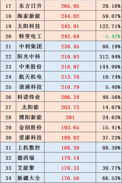 笔者还发现,在百强榜中,67家光伏公司员工人均薪酬同比实现正增长,增幅最高前三名分别为爱廸新能、中来股份和海泰新能,增幅分别约为220.70%、166.60%和64.72%。