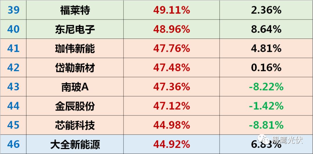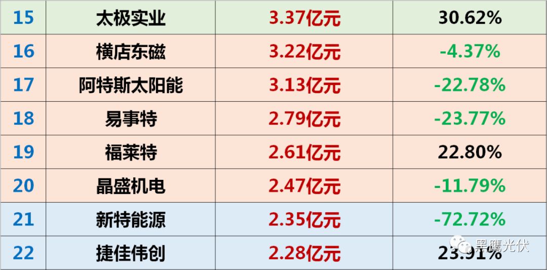 据黑鹰光伏统计,上半年62家光伏上市公司筹资现金流净额为203.74亿元,同比增长了157.74%。尽管看似光伏整体融资能力得到增强,但这主要是头部企业影响所致,据笔者统计,榜单前十名企业筹资净现金流合计为233.55亿元,占整体比重达114.63%,在融资端巨头效应更为显著。其中,上半年29家光伏上市公司筹资现金流净额为负(净流出),这29家企业筹资现金流净流出达71.63亿元,现金流流出最多的三家企业为南玻A、保利协鑫能源和易成新能。![]()