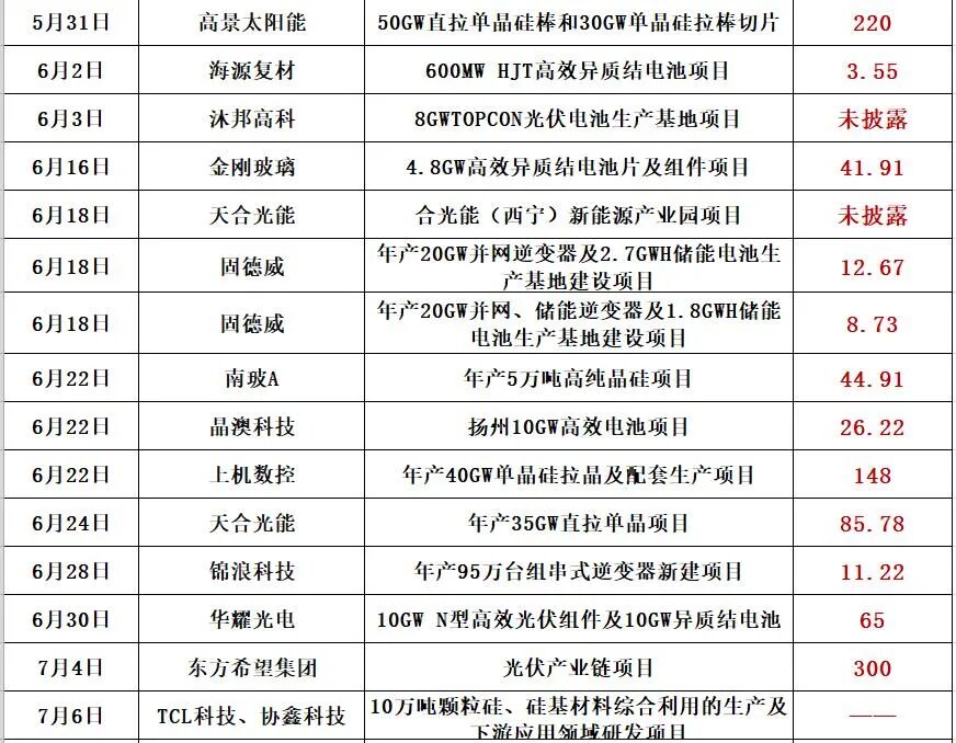 二.2022以来,光伏产能投资已超过7000亿,特别是龙头企业动辄百亿的投资(公告)频频出现,跨界者持续涌入,产能投资还在提速,阶段性绝对过剩风险加剧。![]()