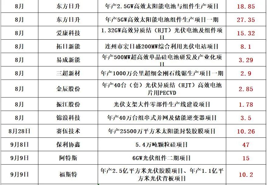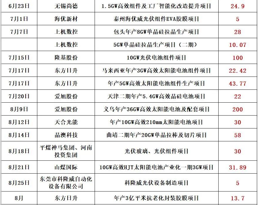 资本的疯狂、政府的热情、企业的雄心促进产业链加速发展扩大。狂热之下,未来光伏出现阶段性产能的绝对的、严重的过剩成为必然。“过剩”通常是竞争市场的常态,但“绝对的过剩”或巨量的过剩,必将引起惨烈竞争和强烈的洗牌。据黑鹰团队统计,过往三年中,可统计的光伏产业的扩产(公告)投资规模已超过20000亿,其投资环节涉及硅料、硅片、电池、组件、光伏玻璃等等几乎所有环节。最新的消息是,通威股份拟在盐城市投资25GW高效光伏组件项目,预计固定资产投资约40亿元。同期消息,天合光能拟投资60亿,在淮安签约15GW电池片和15GW组件项目!往前,宏翎投资95亿在乌鲁木齐米东区布局10万吨N型高纯多晶硅;8月底消息,陕煤投资182亿建设建设10万吨工业硅、10万吨多晶硅、20GW单晶项目;8月17消息,通威股份拟斥资280亿扩产40万吨高纯多晶硅项目。伴随整个行业剧烈持续的扩产,可以预期,未来两三年内,光伏必然有一次深度的调整,重塑格局与秩序。