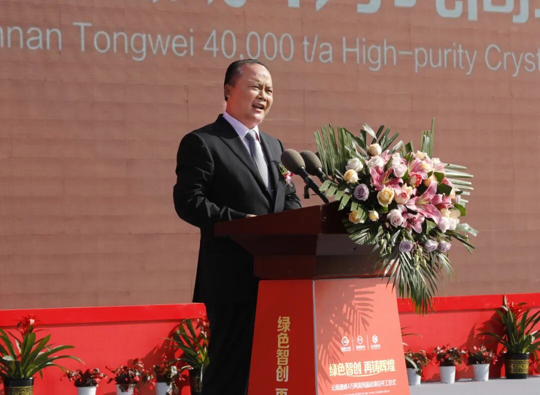 通威股份董事、永祥股份董事长兼总经理段雍致辞表示,十八年来,永祥股份不断砥砺前行,已实现高纯晶硅年产能8万吨,单月出货量超过8000吨,各项指标、质量、成本行业领先。随着保山一期项目的开工建设,到2021年底,永祥高纯晶硅产能将超过16万吨,进一步巩固永祥股份高纯晶硅世界级龙头企业的地位。永祥股份积极投身于“保山硅谷”的打造,充分开发利用保山的水电优势和丰富的硅资源,发挥保山硅基产业重要补链作用,推动保山工业高质量绿色发展。项目将以全新的技术创新、全新的智慧工厂、全新的产品定位、全新的战略定位、全新的核心竞争力“五个全新”为指导思想,高标准、严要求、筑安全,建设花园式现代化化工企业标杆,创造新的云南速度、保山速度和通威速度,为正在崛起的云南保山增光添彩!
