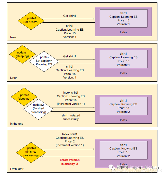 {"error" : {"root_cause" : [{"type" : "version_conflict_engine_exception","reason" : "[_doc][1]: version conflict, current version [3] is different than the one provided [2]","index_uuid" : "b6z8mwmRQ1ambP9g5rv9vQ","shard" : "3","index" : "online-shop"}],"type" : "version_conflict_engine_exception","reason" : "[_doc][1]: version conflict, current version [3] is different than the one provided [2]","index_uuid" : "b6z8mwmRQ1ambP9g5rv9vQ","shard" : "3","index" : "online-shop"},"status" : 409}