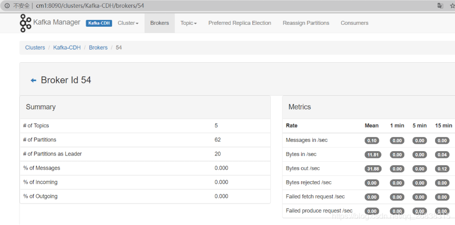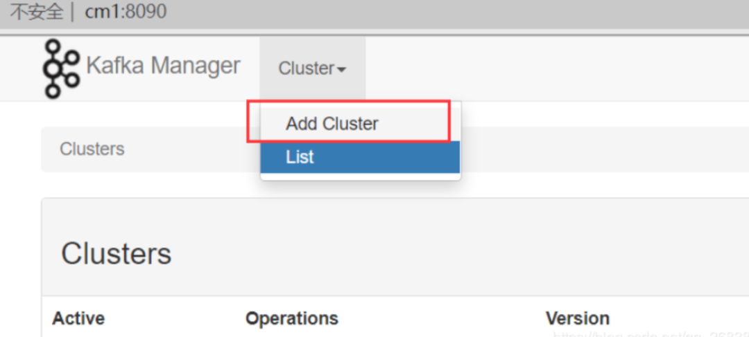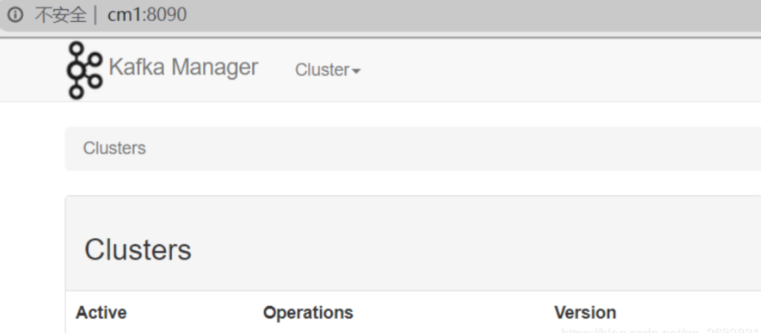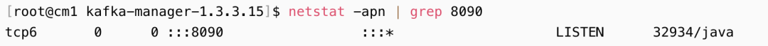 [root@cm1 bin]$ chmod 777 kafka-manager# 默认为9000,但是我的集群有端口冲突,改为8090[root@cm1 kafka-manager-1.3.3.15]$ nohup bin/kafka-manager -Dhttp.port=8090 > nohup.out 2>&1 &