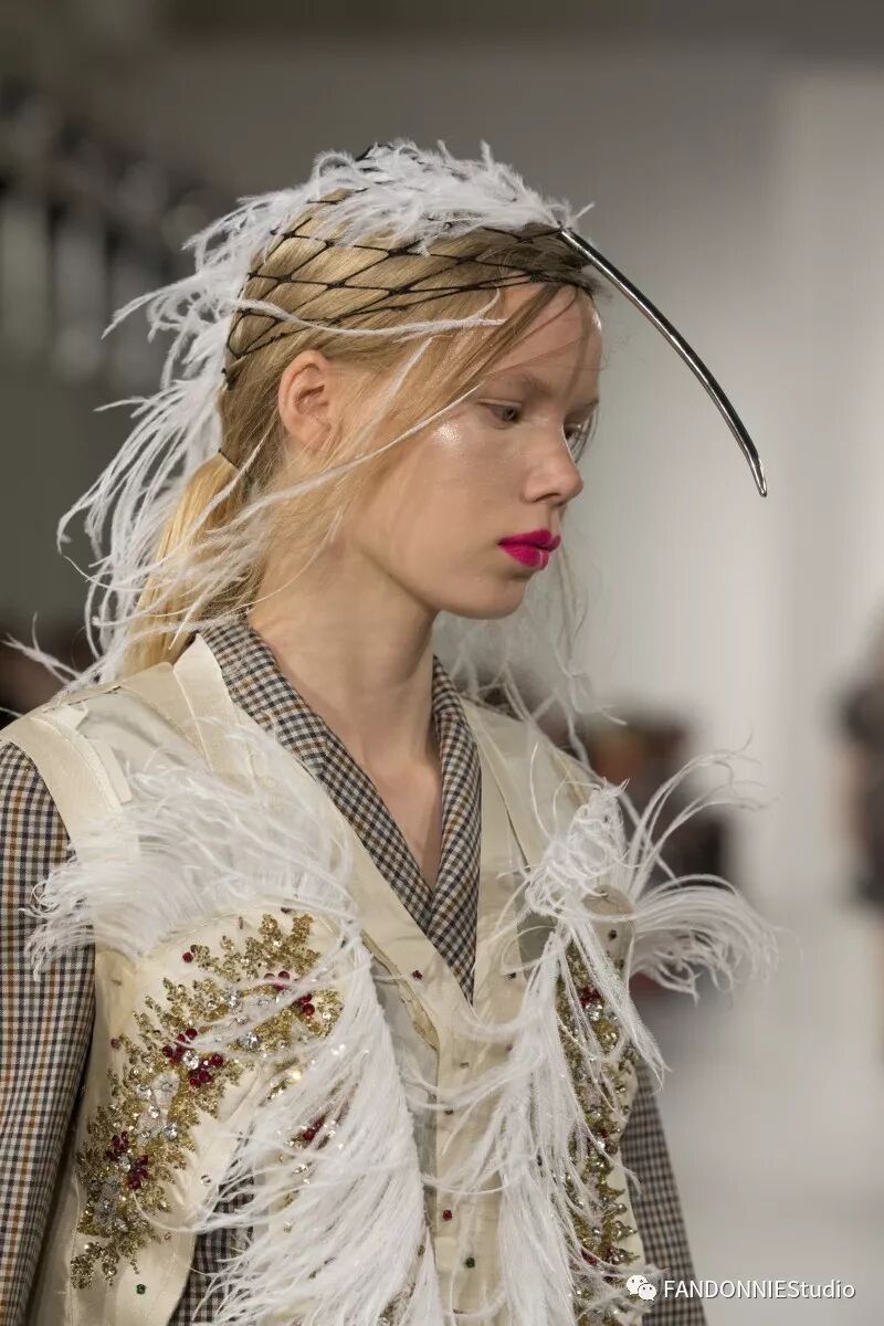 搭配以羽毛和水晶装饰在分层剥离的套衣之上