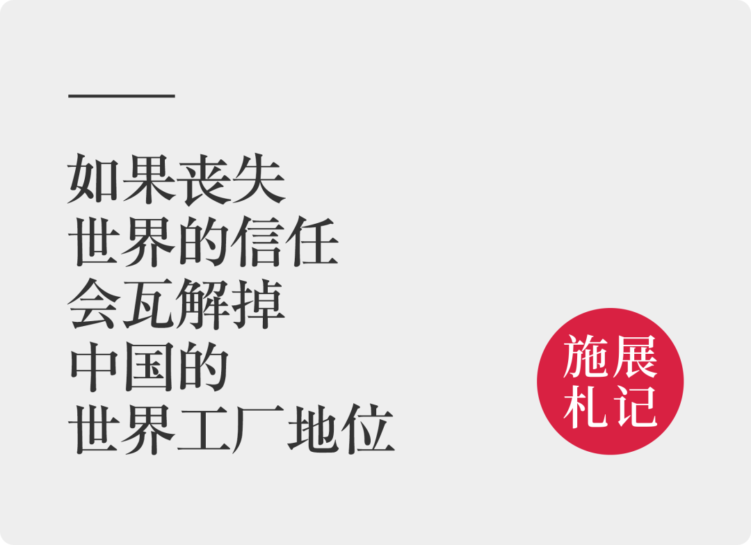 第五、所以,中国要维持自己的“世界工厂”地位,是有前提的,就是要与各国之间能够保持必需的信任关系。在我看来,疫情、贸易战,都不足以改变中国的世界工厂地位,相关问题我有过很多分析(后台回复“中国制造业”阅读);但是,一旦让世界感觉到中国是个不可信任的国家,就会实质性地瓦解掉中国的世界工厂地位。![]()
