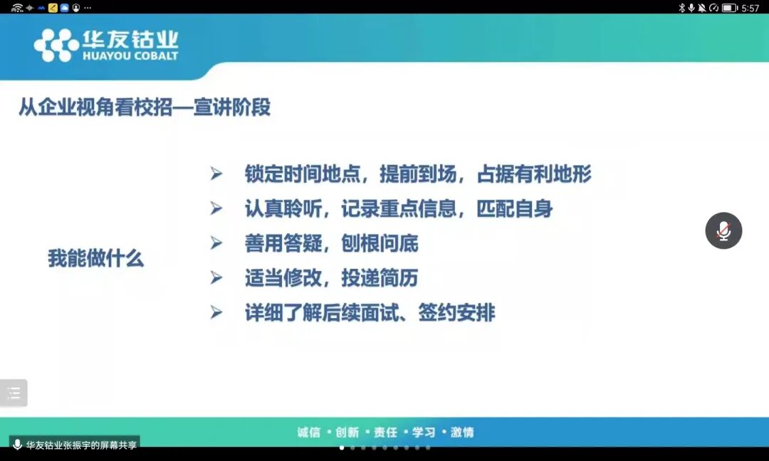 张振宇从企业方面,给同学们提出了几点建议。