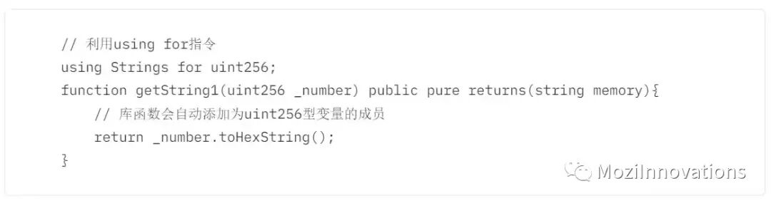 我们用 String 库函数的 toHexString() 来演示两种使用库合约中函数的办法。
