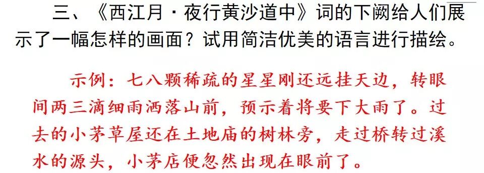 5.《西江月•夜行黄沙道中》诗人在黄沙岭道看到了什么,想到了什么?