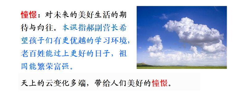 10.华灯:雕饰华美或光华灿烂的灯。本课指天安门广场的灯。挺进:指军队直向前进。
