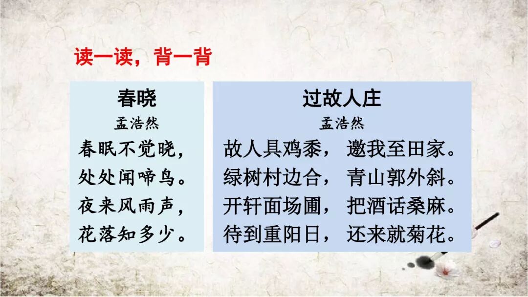 译文:老朋友预备丰盛的饭菜,邀请我到他好客的农家。翠绿的树林围绕着村落,苍青的山峦在城外横卧。推开窗户面对谷场菜园,手举酒杯闲谈庄稼情况。等到九九重阳节到来时,再请君来这里观赏菊花。