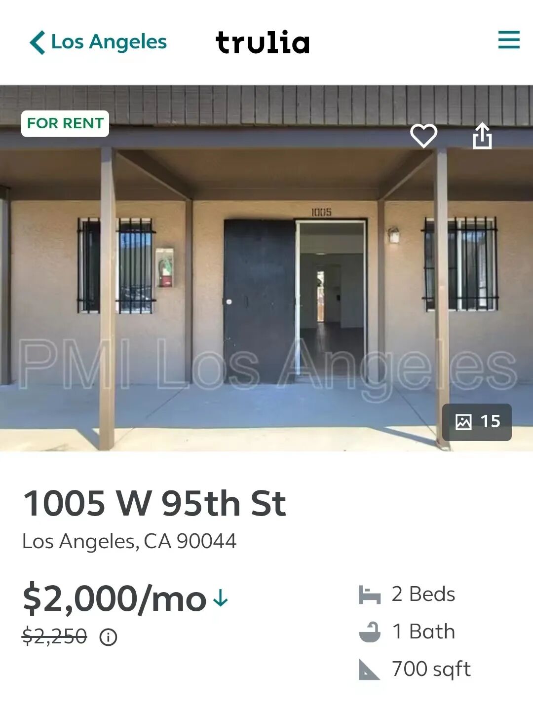 $2,000能租到什么?在 1005 West 95th Street,一个700平方英尺的三层楼单位,有两间卧室和一个卫生间,租金正好是2,000美元。但这往往也取决于你选择住在哪个社区或城市。460 South Spring Street 也有一个2,000美元的选择,是一个470平方英尺、有一个卫生间的工作室。