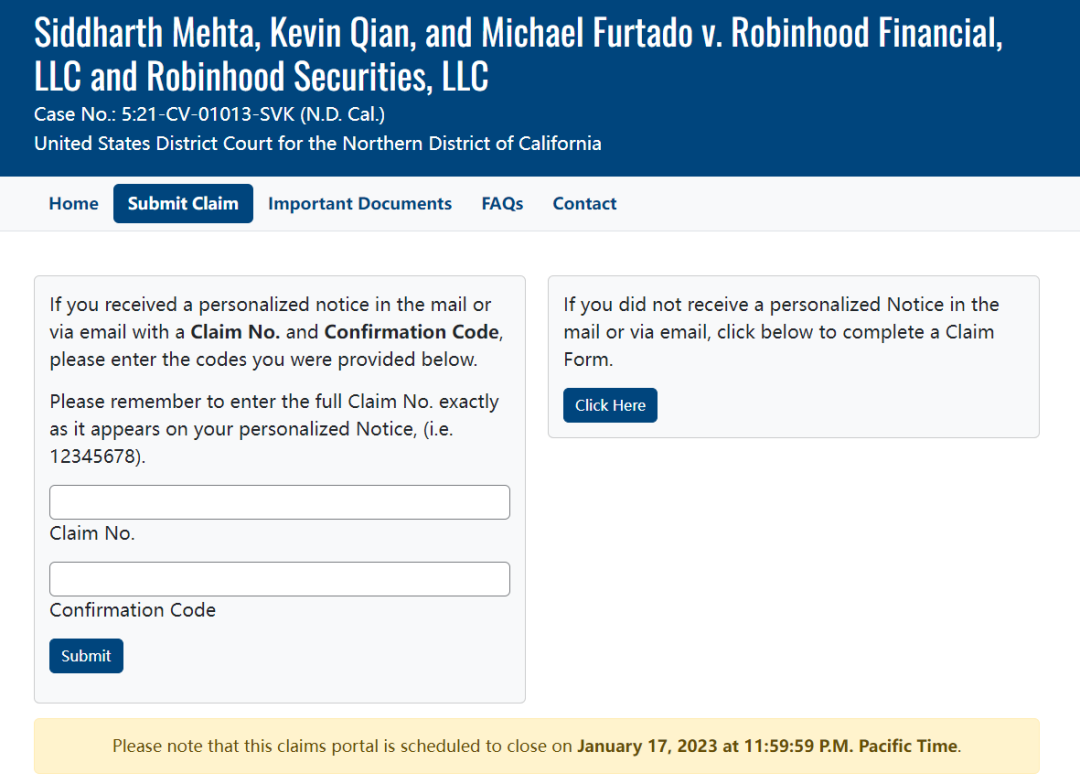 Submit Claim - Mehta v. Robinhood Settlement (robinhoodaccounttakeoversettlement.com)